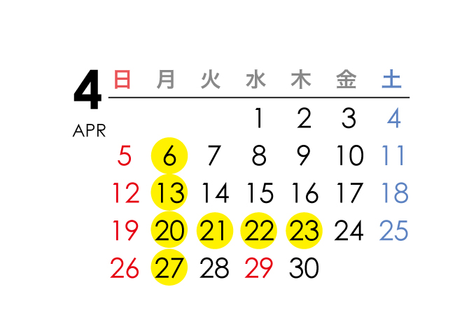 2026年4月のお休み